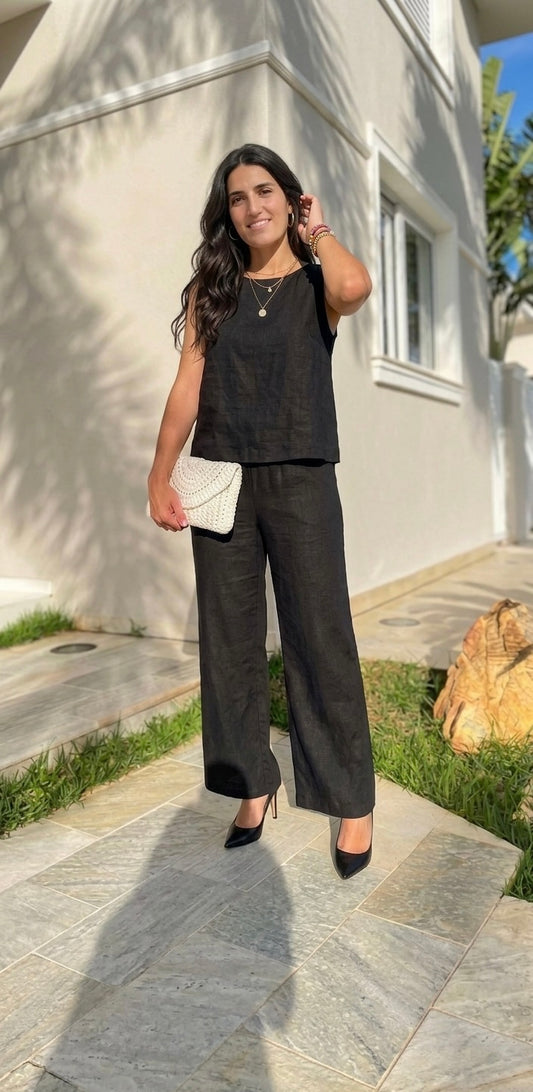 Linen-Blend Sleeveless Top & Wide-Leg Trouser Set