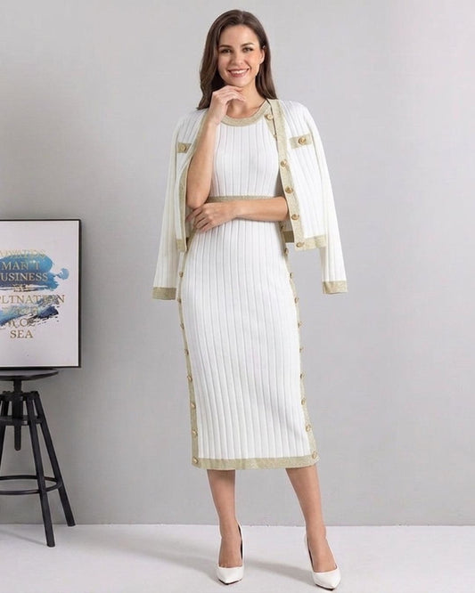 Ribbed Knit Midi Dress & Cardigan Set